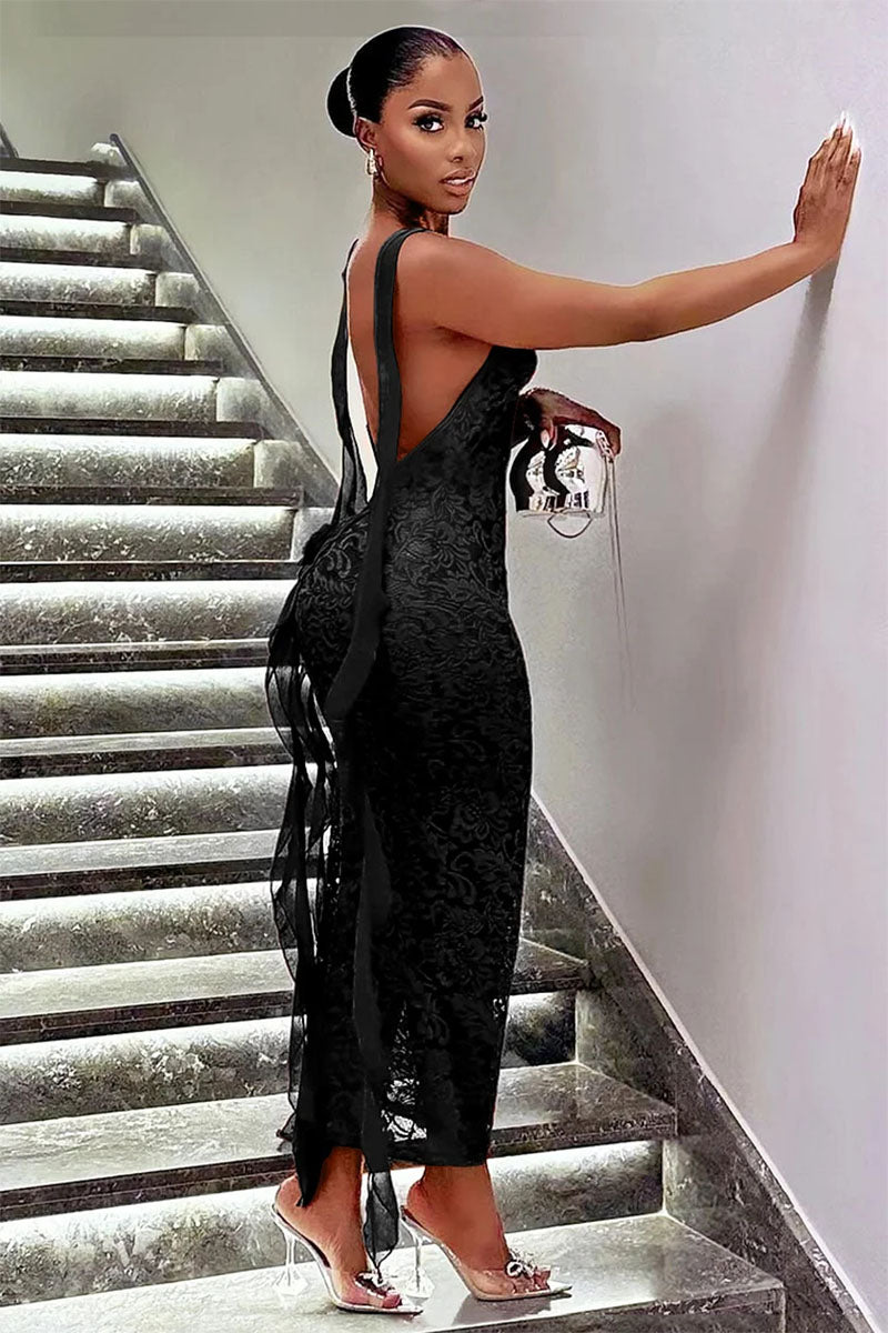 Backless Sash Floral Guipure Lace Party Cami Midi Dresses
