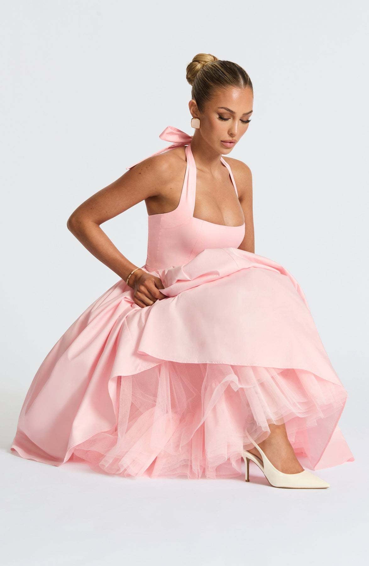 The Cressida Midi Dress in red is a stunning statement piece, perfect for making an impression at any special occasion. Crafted from lightweight fabrics, this dress features a flattering midi length and a square halter neckline that adds a touch of elegance.