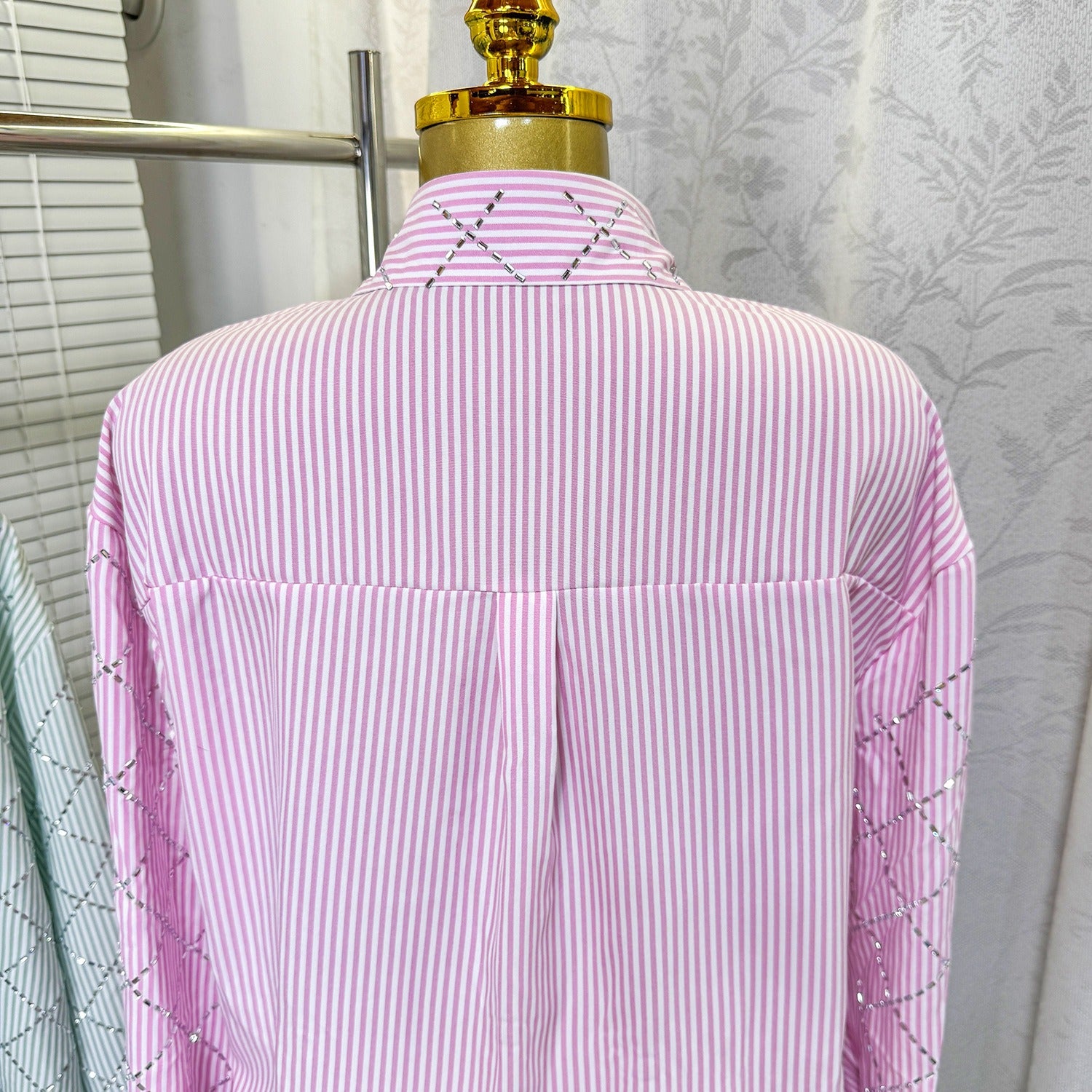 Elegant rhinestone quilted shirt