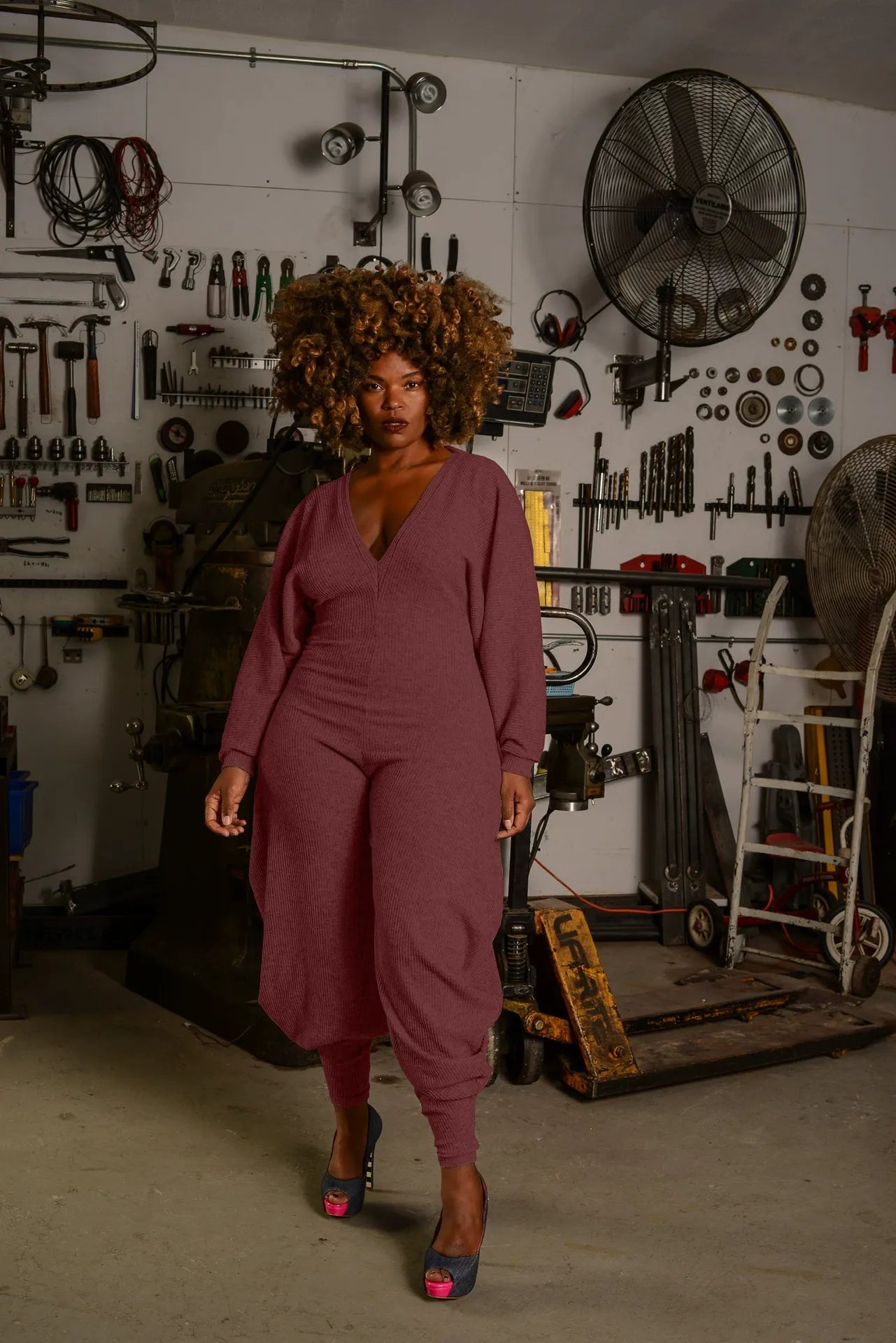 Solid color patchwork jumpsuit