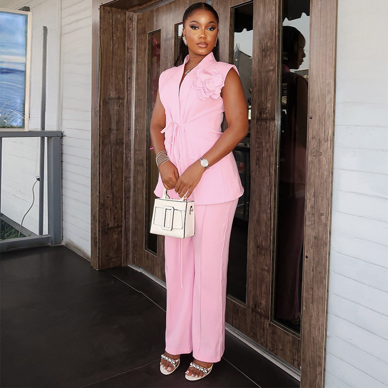 V-neck sleeveless 3D flower suit
